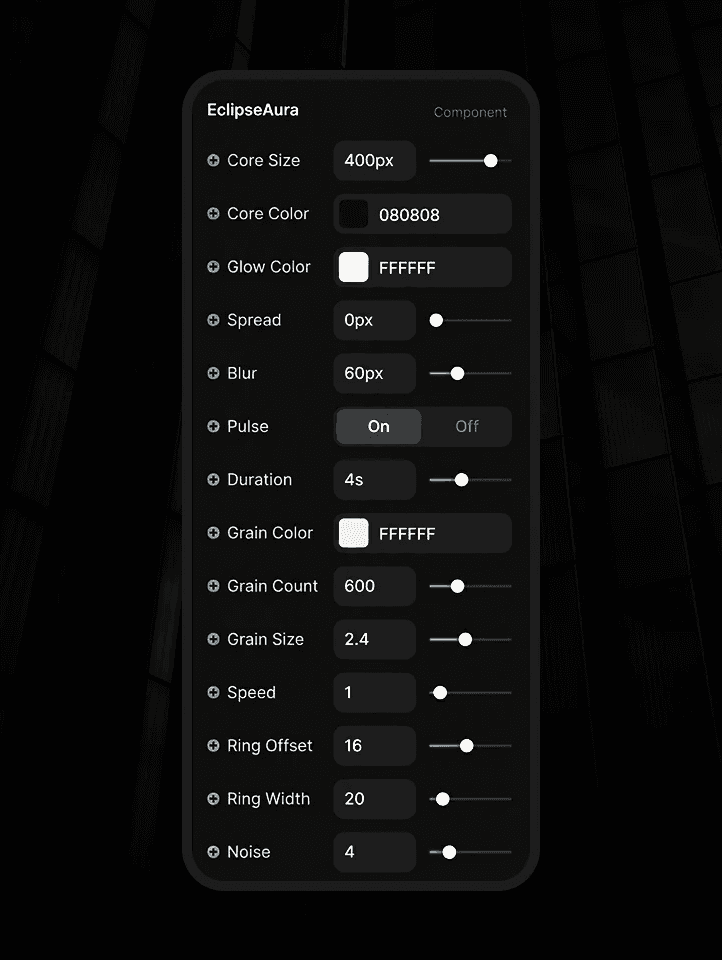 React component designed for Framer that brings a cinematic "solar eclipse" aesthetic to your digital interfaces.